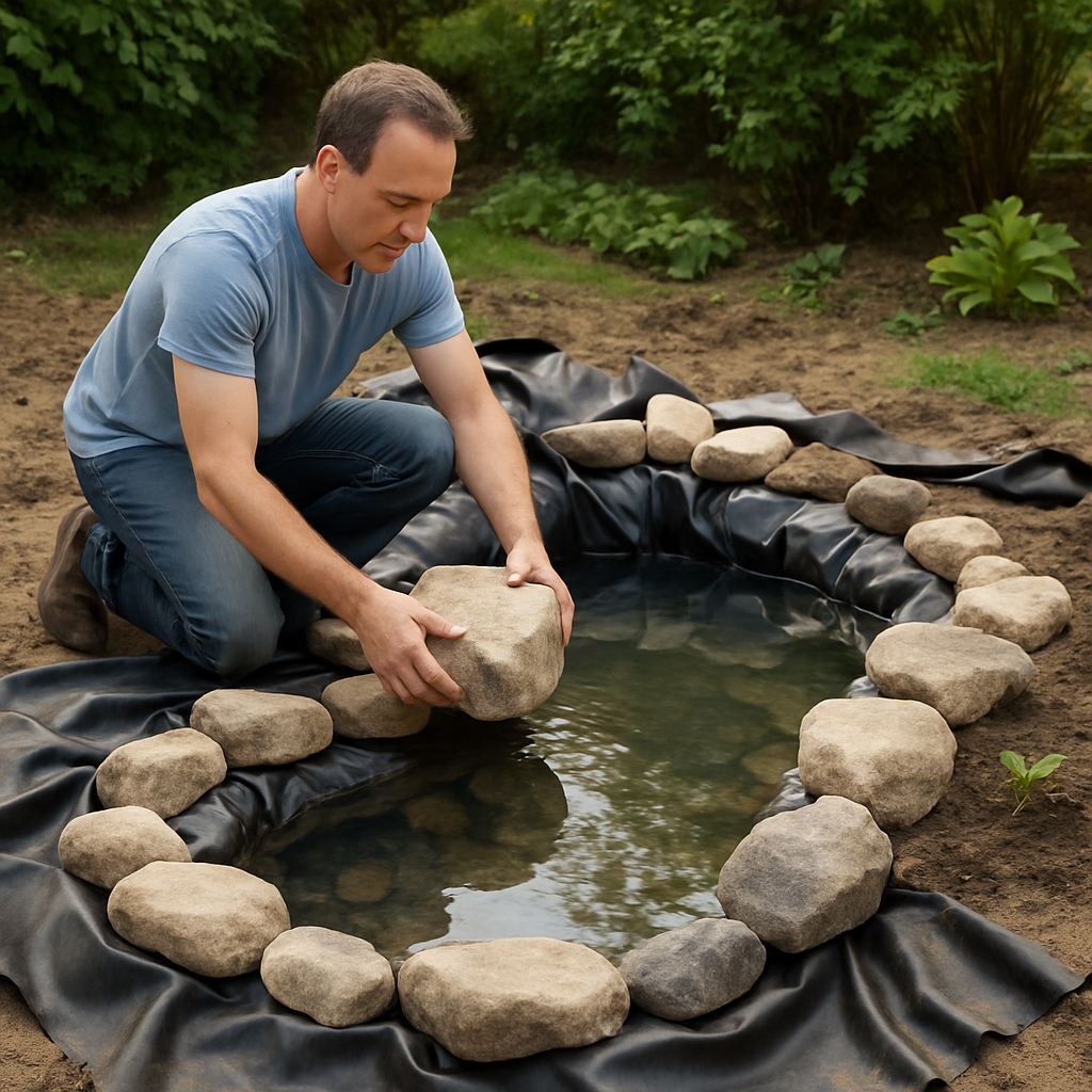 - Afwerken: Werk de randen af met stenen en planten om de vijver een natuurlijke uitstraling te geven.